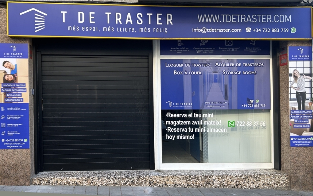 Lloguer de trasters a Roses, Costa Brava. T de Traster ofereix més de 70 unitats individuals de 1.3m² a 9.8m². Preus des de 50€ fins a 270€ al mes. Fiança de 50€. Accés 24 hores els 365 dies de l'any. Videovigilància CCTV 24/7 connectada amb la policia. Assegurança inclosa. Zona de càrrega i descàrrega.