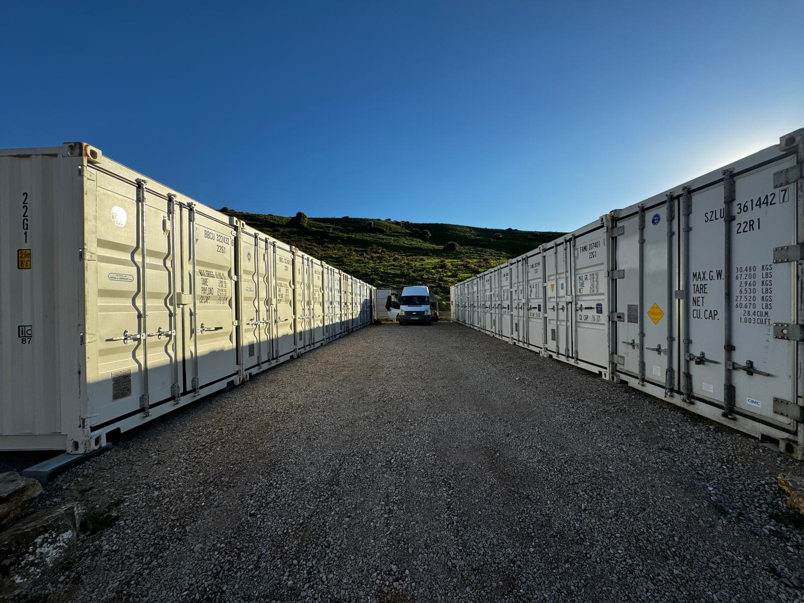 Alquiler de trasteros en contenedores en Tarifa (Cádiz) - Sunbox Containers Tarifa. Contenedores blancos nuevos, secos, impermeables. Acceso 24/7/365, acceso con coche. Bilingüe (ES/EN). Zona kitesurf/vanlife.